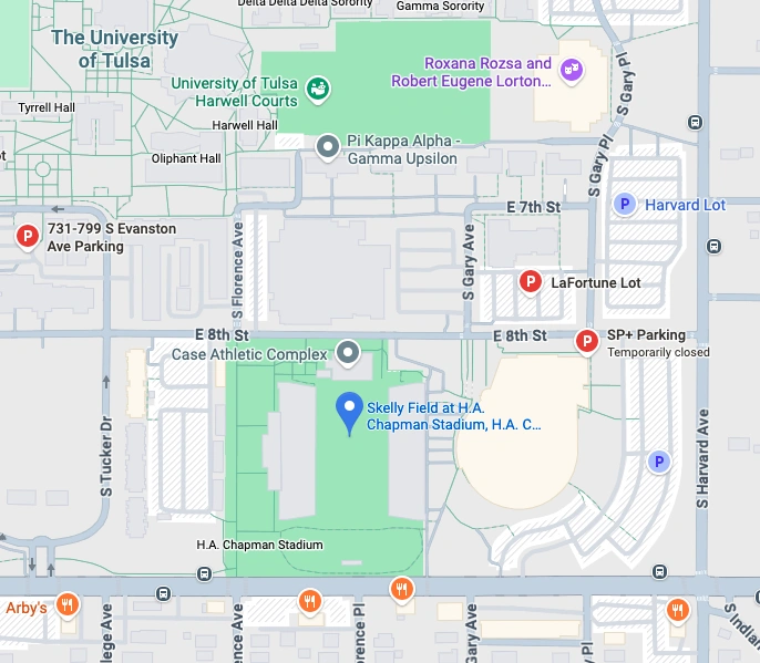 Once parked, there is a short walk to the Skelly Field at H.A. Chapman Stadium entrance. Tulsa traffic is notoriously busy around Skelly Field at H.A. Chapman Stadium during popular events. With these in mind, please allow a little extra time to your journey.